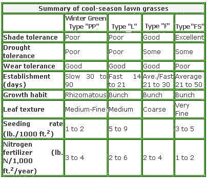 Less problematic than fescue. Use as nursery grass or winter lawn. Gives a beautiful green lawn throughout the winter. Mow at 2.0". Will survive the summer, but needs