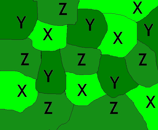 Below is an example of a section of lawn with grass types "X", "Y" and "Z" making a lawn.